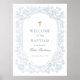 Create a warm first impression with this floral Baptism welcome sign, adorned with blue line-art blooms and a gold cross. Ideal for Christian celebrations, this editable template pairs perfectly with gold, blue, and neutral event themes. Personalize your details online and print locally for a beautiful, custom display by Adore Paper Co.