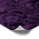 An elegant blue masquerade mask features intricate swirling patterns and shimmering jewels, exuding a sense of mystery and sophistication. The design includes ornate embellishments, a purple damask background, and curling details that enhance its captivating appearance.