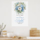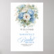 Póster Elegant Blue Peonies Gold Bridal Shower Welcome