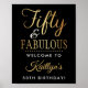 Celebrate a half-century of style with this sophisticated "Fifty & Fabulous" birthday party welcome sign. Featuring a striking high-contrast design, this welcome sign pairs a deep black background with a shimmering faux gold foil script that exudes elegance and luxury. This template wording is fully customizable, allowing you to easily update the name for the special party! Whether you’re hosting a formal dinner at a hotel or a chic cocktail soirée, this welcome sign will set the perfect tone for a memorable 50th milestone celebration.