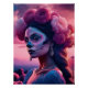 Póster Elegant Fuchsia Roses Day of the Dead Catrina