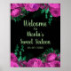 Póster Elegant Hot Pink Flowers Sweet Sixteen Welcome