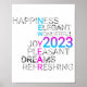 elegant new year 2023 quotes sayings in colorful colors and textured text typography with phrase happiness elegant wonderful joy pleasant dreams refreshing and hidden word NEW YEAR. Perfect for products, Such as:- Sticker, Poster, Banner, Gift card, Mug, Bag, Label, Phone Case, Notebook Cover and much more for Merry Christmas. Perfect for giving as a gift for father, mother, son, daughter, sister, brother, grandparents, boyfriend, girlfriend, husband, wife, uncle, teacher, family. For anyone who you love. Happy new year 2023.
