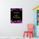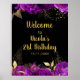 Pretty birthday welcome sign with purple flowers and gold foliage. The words can be changed to suit your own details or requirements. Would be perfect for a birthday party.