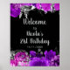 Póster Elegant Purple and Silver Flowers Birthday Party