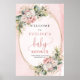 Póster Elegant Rose Gold Floral Baby Shower Welcome Sign