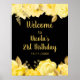 Pretty birthday welcome sign Pretty birthday welcome sign with yellow flowers and gold foliage. The words can be changed to suit your own details or requirements. Would be perfect for a birthday party.