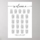Moderno Plan de asientos para Bodas de guiones. Señal de bienvenida. Sillones Minimalistas personalizados para 210 personas (21 mesas). Simplemente haga clic en el enlace personalizar adicional, que se muestra bajo el área de personalización de texto a la derecha, y elija el fondo de color personalizado. Esta plantilla de poster de signos facilita y agiliza la creación de increíbles adiciones a la decoración boda. Se pueden ampliar los Rótulos, hay muchos tamaños para elegir, así como opciones para el enmarcado y apareamiento de personalizados.