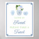 Las flores clásicas azules y blancas en un jarrón de jengibre decoran el diseño de la señal de esta fiesta. Todo el texto es totalmente personalizable según tus necesidades. También puedes eliminar o agregar campos de texto entrando en la herramienta de diseño (haz clic o pulsa en "personalizar más" debajo de las casillas de personalización de texto). También puedes cambiar el color del borde de la llave griega cambiando el color de la capa de fondo (de nuevo dentro de la herramienta de diseño).