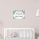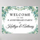 Cartel de bienvenida de aniversario elegante con eucalipto. Da la bienvenida a tus invitados a tu evento, como una fiesta de aniversario de bodas, ceremonia de boda, recepción de boda, ducha de pareja, fiesta de compromiso o evento de renovación de votos matrimoniales con este cartel de bienvenida totalmente editable que presenta eucalipto botánico de acuarela y nombres en una tipografía de escritura caligráfica elegante. Este PRODUCTO también está disponible como archivo digital descargable para imprimir localmente o compartir digitalmente en línea. OPCIONES: La muestra se muestra en un tamaño de 18x24" en papel Value (Matte); otros tamaños de impresión estándar y personalizados, calidad del papel y enmarcado, archivo de descarga digital instantánea para imprimir localmente o transferir el diseño a un tablero de espuma, pancarta u otros artículos están disponibles en la página de pedido. CONSEJO DE REDIMENSIONAMIENTO: Elija Tamaño personalizado para bordes uniformes cambiando la altura y el ancho proporcionalmente DESPUÉS de hacer clic en el icono de DESBLOQUEAR (parece un enlace de cadena). ASISTENCIA: Para obtener ayuda con la modificación o personalización del diseño, cambio de tamaño, transferencia del diseño o si desea artículos coordinados, comuníquese con el diseñador ANTES DE PEDIR a través de la pestaña de MENSAJE de chat de Zazzle o correo electrónico makeitaboutyoustore@gmail.com. ASISTENCIA: Para obtener ayuda con la modificación o personalización del diseño, transferir el diseño a otro producto o si desea artículos coordinados, comun