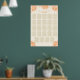 Elegante diseño de poster de gráfico de asientos boda de peones con un monograma de los nombres de novias y novios y fecha boda, texto de plantilla personalizado para números de tabla y nombres de invitados, así como peonías con un aspecto dibujado a mano/esbozado. Los colores incluyen peonías florales naranjas, fondo de marfil y texto de oro.