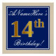 Póster Elegante, azul, falso oro 14 cumpleaños + nombre