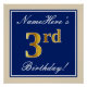 Póster Elegante, azul, falso oro tercer cumpleaños; nombr