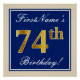 Póster Elegante, Azul, Faux Gold 74th Birthday + Nombre