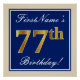 Póster Elegante, Azul, Faux Gold 77th Birthday + Nombre
