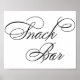 Esta hermosa y atemporal señalización horizontal de la mesa "Snack Bar" le da una elegancia sencilla a cualquier tipo de recepción nupcial clásica, ducha o motivo fiesta. El lujoso diseño de guiones cuenta con una fascinante y romántica caligrafía negra moderna. El bonito tipo de letra con un color de fondo de personalizable facilita la adaptación a cualquier tema. Para otros colores o productos a juego, por favor visite la tienda JustFharryn Zazzle, o contacte con el diseñador, c/o Fharryn@yahoo.com Todos los derechos reservados. #zazzlemade