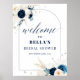 Póster Elegante Blue Floral Bridal Shower Poster de bienv
