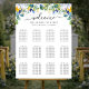 Bienvenidos invitados a sus asientos con este elegante cartel de asientos de boda de acuarela floral amarilla y azul. Hermosas flores de acuarela con detalles florales azules y flores amarillas crean un impresionante diseño inspirado en el jardín botánico. Tonos azules polvorientos y dorados combinados con una paleta de boda azul y amarilla lo hacen ideal para celebraciones de verano y primavera.