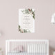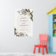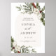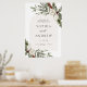 Bienvenido a su boda con este hermoso cartel, que presenta un marco de flores de invierno y elegantes verduras. Añada el nombre del invitado de honor, la fecha de la ducha y el texto de bienvenida del personalizado utilizando los campos proporcionados.
