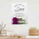 Presenta tu celebración boda con estilo con este impresionante cartel. Su diseño es a la vez sofisticado y sobrio, con delicada caligrafía de escritura y un elegante magenta de tallo largo, rosa de color cassis morado o berry reflejado en un estanque de agua, con olas y ondas. Esta exquisita pieza es el toque perfecto para saludar a sus huéspedes en su día.