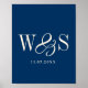 Póster Elegante boda de las iniciales de la pareja azul m