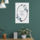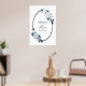 Un elegante poster de capucha boda con flores azules que presenta los nombres de la novia y del novio y su fecha boda.