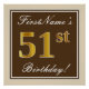 Póster Elegante, Brown, Faux Gold 51st Birthday + Nombre