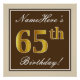 Póster Elegante, Brown, Faux Gold 65th Birthday + Nombre