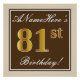 Póster Elegante, Brown, Faux Gold 81st Birthday + Nombre