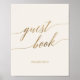Este elegante letrero de libro de invitados marfil con caligrafía en oro es perfecto para una boda sencilla. El diseño neutral presenta un cartel minimalista decorado con tipografía romántica y caprichosa de falso foil de oro.