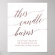 Esta elegante señal de caligrafía en rosa oro "esta vela arde" es perfecta para una boda simple. El diseño de rosa pálido presenta un póster minimalista decorado con tipografía romántica y caprichosa de falso foil de rosa oro.