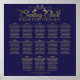 Este bonito cuadro de 13 asientos para bodas de mesa facilitará a los clientes la posibilidad de encontrar los asientos que se les han asignado en la recepción. Presenta un diseño sencillo y elegante con letras doradas sobre un fondo azul marino y un Relieve metalizado falso vintage con un borde de fibra floral.