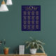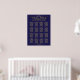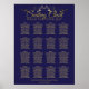 Facilite a sus huéspedes la posibilidad de encontrar sus mesas en la recepción de su boda con esta tabla de 16 asientos. Presenta un diseño sencillo con elegantes letras doradas y un vintage borde floral sobre un fondo azul marino.
