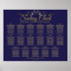 Bonita tabla de asientos boda para 17 mesas. Presenta un diseño sencillo y elegante de letras doradas sobre un fondo azul marino con un florido Relieve metalizado o un florido borde. Facilita a los clientes la búsqueda de sus asientos en la recepción.
