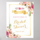 Póster Elegante Chic Floral Dorado Marco Ducha de Novia