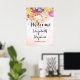 Plantillas de Poster de señas de bienvenida boda - Flores de color de agua elegantes y manuscritas sobre fondo de salpicaduras de acuarela. Un diseño perfecto para tu gran día. ¡Todo el estilo de texto, colores, tamaños se pueden modificar para adaptarlo a sus necesidades!