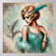 Elegante Flapper Lady con un vestido turqués, años 20, Art Deco, de dos caras.
