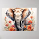 Póster Elegante elefante y acuarela floral