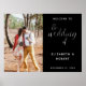 Elegante letrero de boda de bienvenida con la foto de la pareja, con un diseño minimalista en blanco y negro.