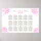 Elegante diseño de poster de organigrama de boda presenta un borde de peonías románticas, un monograma de los nombres de novias y novios y fecha de boda, texto de plantilla de personalizado para números de tabla y nombres de invitados. Color rosa fucsia, gris marrón y blanco.