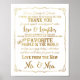 Póster elegante Gracias a la mesa bodas signos de oro