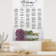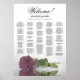 Añada un toque de sofisticación a su día especial con este hermoso cuadro de asientos bodas. Un impresionante rosa polvoriento o una rosa rosa rosa rosa malva se refleja en un estanque de agua, creando un diseño impresionante. Cuando el título dice "Bienvenidos - por favor encuentren su mesa" en la caligrafía del guión y los nombres de la pareja y la fecha del boda le dan un toque personal. Con un máximo de 200 nombres en orden alfabético, esta tabla de asientos facilitará a los huéspedes la búsqueda de sus asientos. Elegante, romántico y moda, este diseño es perfecto para una sofisticada y elegante recepción nupcial.
