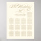 Elegante diseño de poster de gráfico de guiones de caligrafía boda con un monograma de los nombres de novias y novios y fecha de boda y texto de plantilla de personalizado para números de tabla y nombres de invitados. Oro de champán y colores imprimidos de marfil blanco suave.