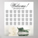 Presentamos nuestra impresionante tabla de asientos para 28 bodas de mesa, perfecta para acoger hasta 280 personas con 10 asientos por mesa. El diseño floral clásico e intemporal exhibe un solo rosa de marfil de tallo largo, blanco o crema en su lado reflejado en el agua. El elegante título de la caligrafía del guión dice: ¡Bienvenidos! Encuentra tu mesa, con espacio para los nombres de la pareja y la fecha del boda a continuación. Esta carta rebosa romanticismo, sofisticación y elegancia, añadiendo un toque de elegancia a la recepción de tu boda y haciendo que sea fácil para los huéspedes encontrar sus asientos.