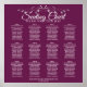 Este bonito cuadro de 12 asientos para bodas de mesa facilitará a los clientes la posibilidad de encontrar los asientos que se les han asignado en la recepción. Presenta un diseño sencillo pero elegante con texto blanco sobre fondo morado o magenta en forma de cassis y un Relieve metalizado falso plateado con un borde de fibra floral vintage.