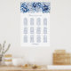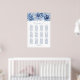 Ayude a sus huéspedes a encontrar su mesa con esta elegante tabla de asientos florales azules. Tiene capacidad para 12 mesas y 120 personas.