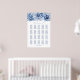 Ayude a sus huéspedes a encontrar su mesa con esta elegante tabla de asientos florales azules. Tiene capacidad para 20 mesas y 200 personas.