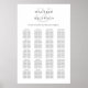 Elegante poster de tablas de asientos boda en blanco y negro con un diseño sencillo y minimalista con un gran ampersor y detrás de los nombres de la novia y el novio en un tradicional estilo serif. Puede cambiar las fuentes / colores en la herramienta de edición de diseño. La plantilla se puede actualizar por tabla o alfabético. Una elección clásica perfecta para un boda formal.
