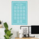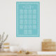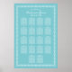Un impresionante gráfico de asientos de boda en azul acuatica y blanco adornado con bordes ornamentados con florituras vintage. La elegante tipografía script y serif muestra sus nombres y la fecha de la boda encima de una disposición de mesas bien organizada. Personalice cada detalle para una recepción fresca y sofisticada.