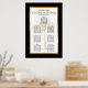 Añada su propio toque especial a este elegante diseño con escritura moderna y texto negro, incluyendo una silueta artística de la palmera de oro con un marco metálico de cobre de oro. Este diseño de la gráfica de asientos incluye los nombres de la novia y el novio, junto con las palabras "Come, bebe y sé moro" y "Encuentra tu asiento". Se proporcionan plantillas para un máximo de siete tablas con un máximo de 8 ó 9 nombres por tabla.